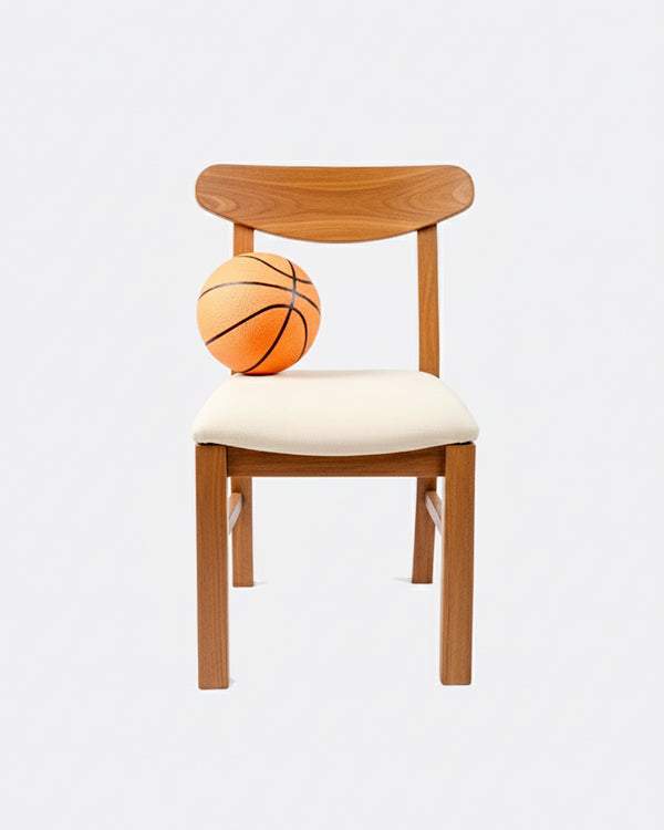 A modern dining chair crafted in solid teak wood, designed with soft curves and Scandinavian simplicity. The wide backrest provides natural support, while the cushioned seat adds comfort for long dinners, work sessions, or casual conversations. Finished with Italian PU for a smooth, durable surface that highlights teak’s natural grain.