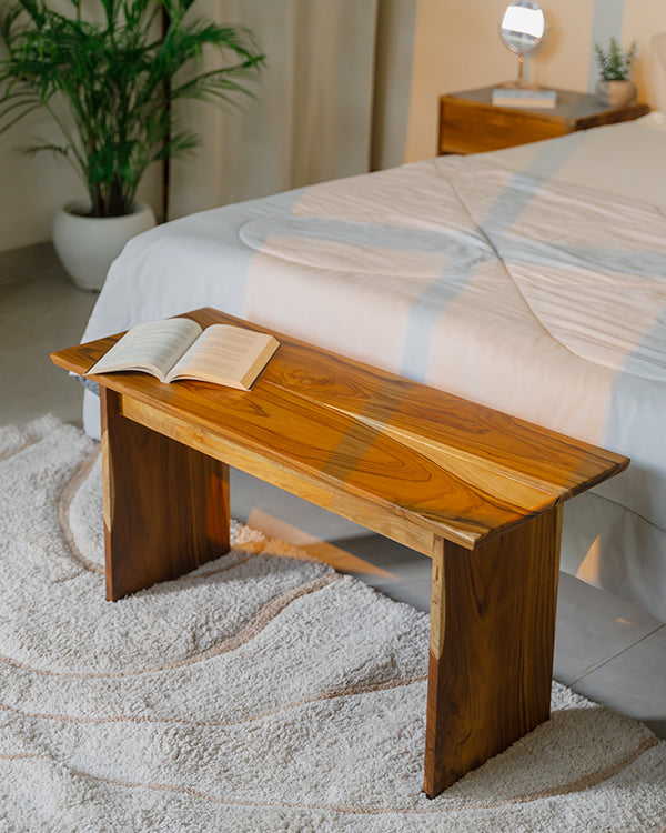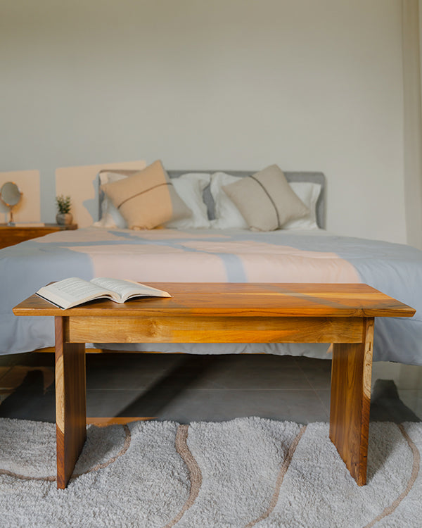 Versatile, streamlined, and built to last, the Pillar Bench is designed for everyday spaces—from the foot of your bed to your entryway or hallway. With clean architectural lines and a minimalist form, it adds functionality and warmth wherever it's placed. Crafted entirely from solid teak wood, it’s a timeless piece with a grounded presence.